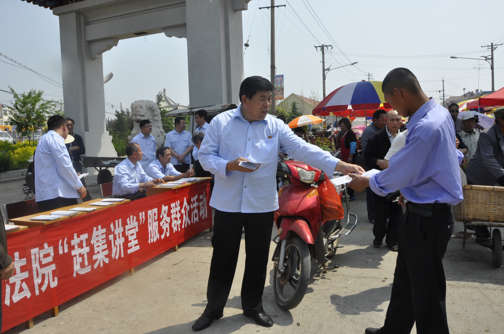 为搞好此次宣传活动,他们精心编印了宣传材料,内容包括立案须知、诉讼程序、诉讼风险等事项。徐家店、行村、留格庄等法庭每逢集市都组织法官到驻地开展“赶集讲堂”活动,热情地为来往群众发放法律宣传资料,耐心地为群众提供法律咨询、法律援助等服务,引导群众学法、知法、守法,以理性方式表达诉求。